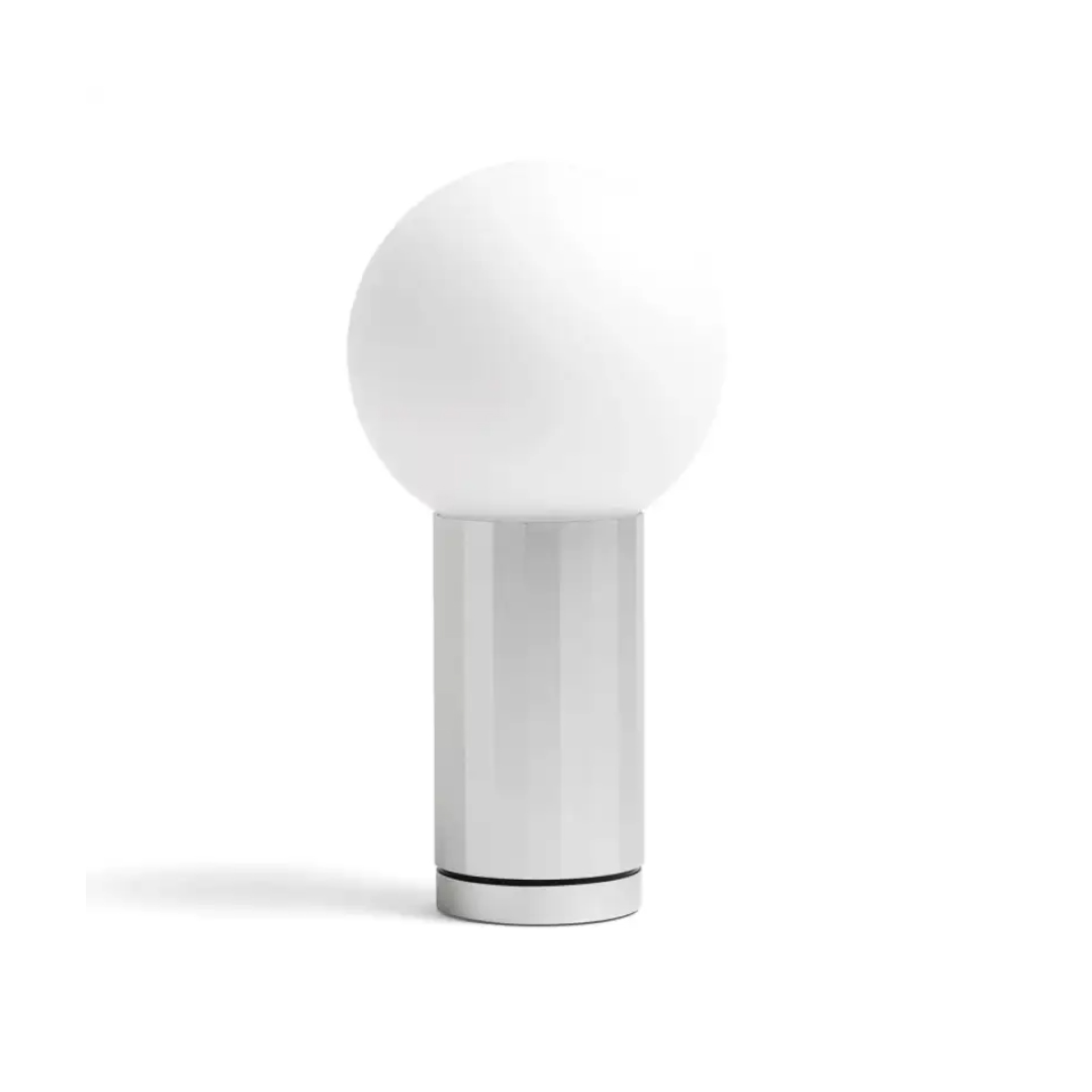 Turn On is a compact, modern table lamp with a spherical opal glass shade and aluminium base. The base doubles as a dimmer—simply rotate to adjust brightness. With its clean design and clever functionality, its a stylish and practical addition to any interior.